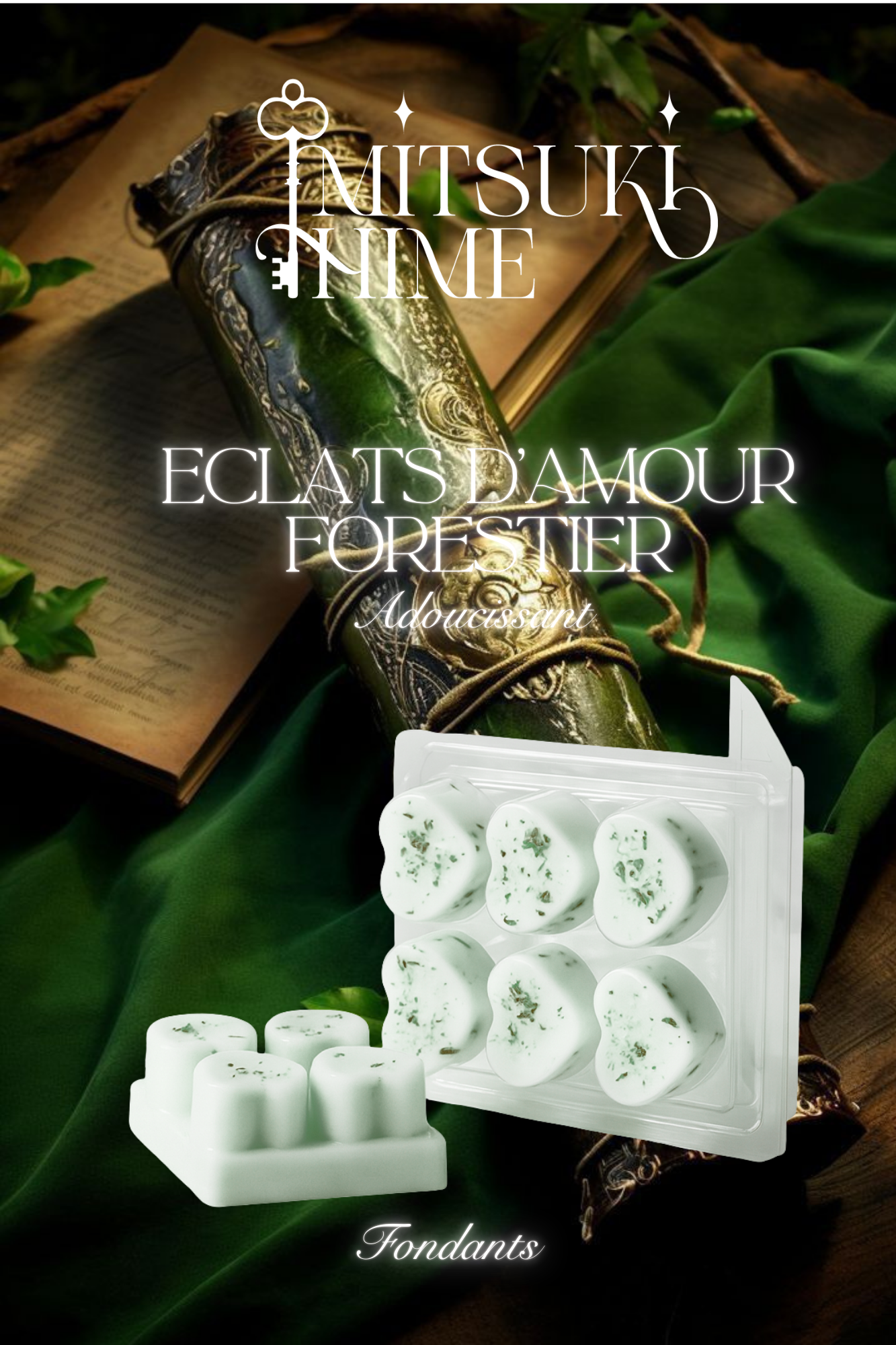 Des fondants doux et envoûtants qui mêlent la tendresse de l’amour à la magie sauvage de la forêt.« Éclats d’Amour Forestier » diffuse un parfum adoucissant , chaleureux et légèrement sucré, comme deux cœurs qui se retrouvent sous les arbres. Fondant, il libère une aura romantique et naturelle, idéale pour une Saint‑Valentin douce, authentique et profondément enchantée.